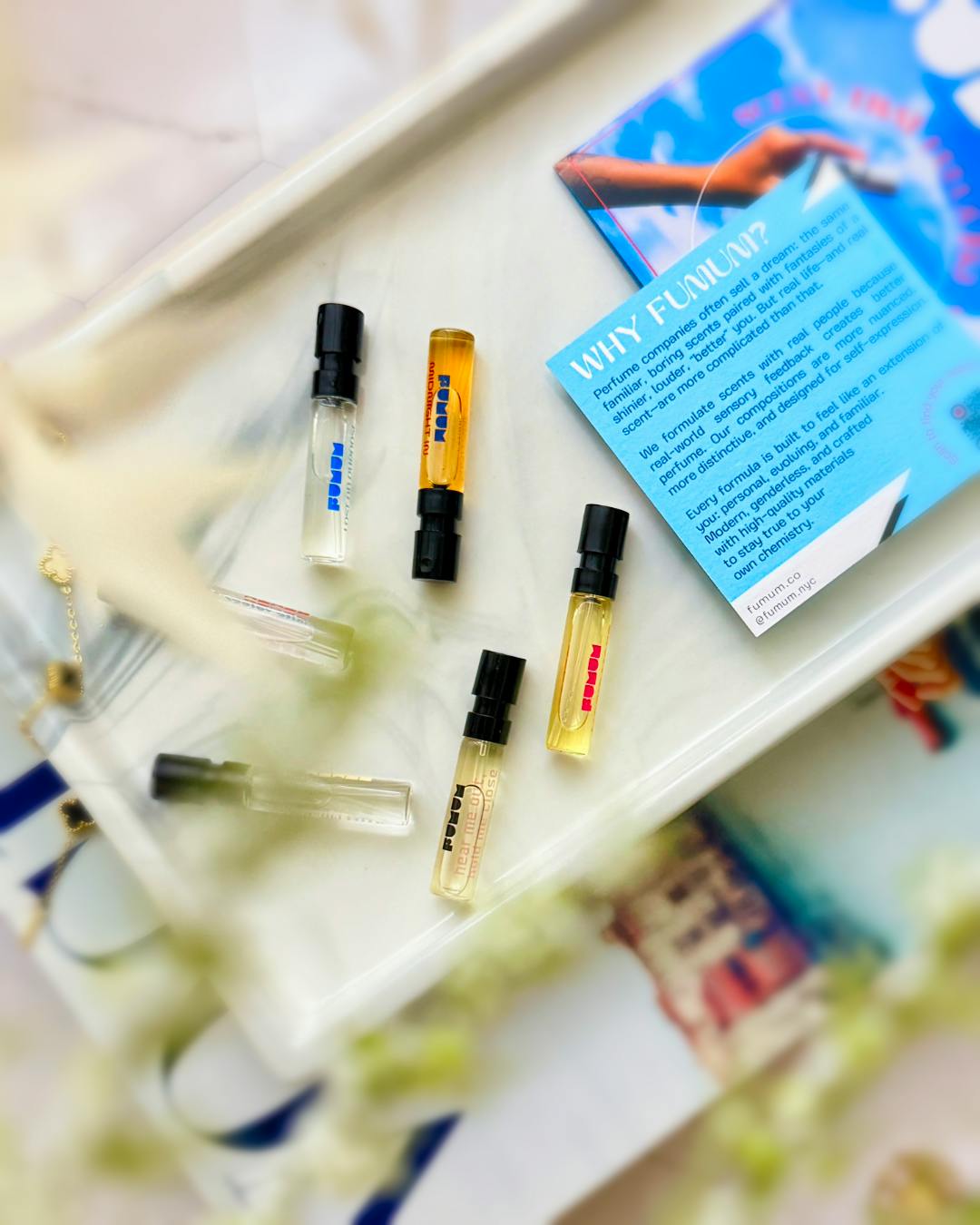 Inside the tin you’ll find 2ml vials of every Fumum scent—so you can spray, test, compare, overthink, or just wear what feels right that day.
